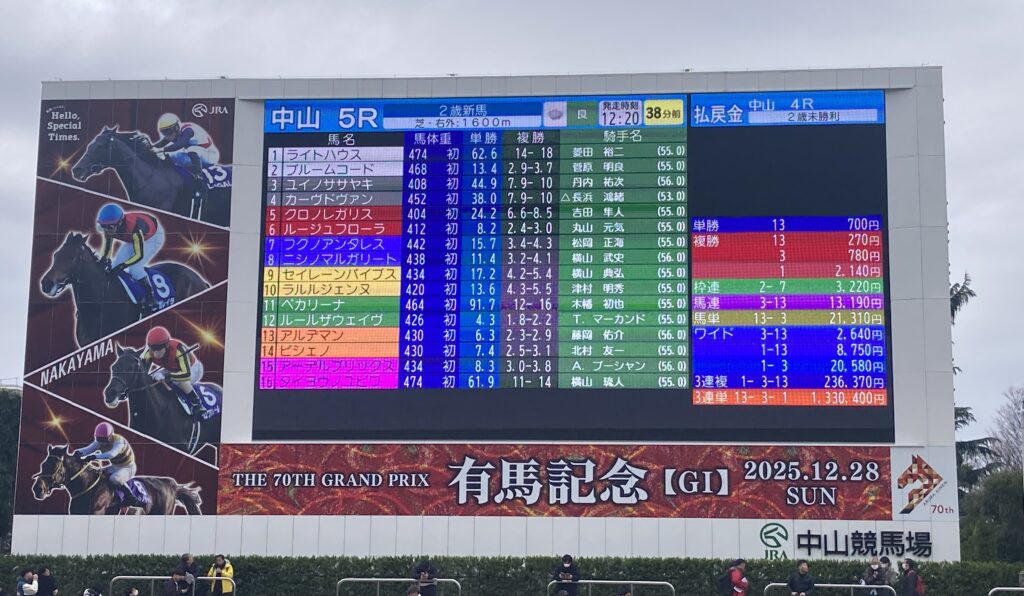 ちなみに夫は、G1・ホープフルステークスの馬券を買って当然のようにはずし、翌日の有馬記念の馬券も見事にはずしていました。