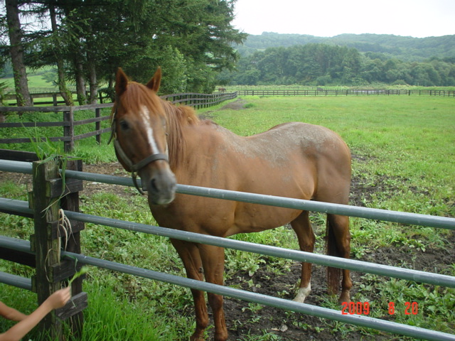 その馬は、1992年の皐月賞と日本ダービーを制した名馬・ミホノブルボン。引退後は日高町のスプリングファームで静かに余生を過ごしていました。残念ながら2020年に亡くなりましたが、当時は見学も可能で、現役の頃と違って自由に伸び伸び過ごしていた姿が印象に残っています。